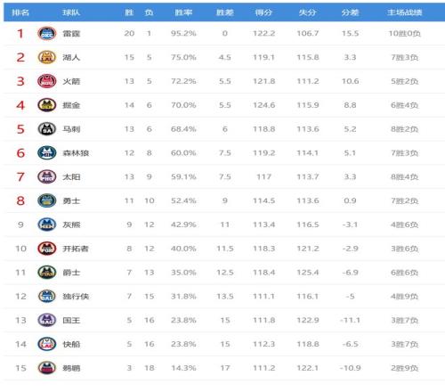 快船输球后5连败,战绩5胜16负,排名从西部第13掉到第14,国王成为西部第13。