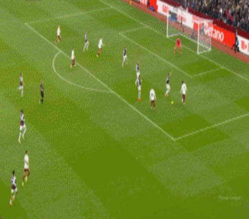第11分钟,维拉反击,沃特金斯摆脱两名防守球员之后左脚抽射被门将拉亚扑出,这是开场以来双方的第一脚威胁打门。