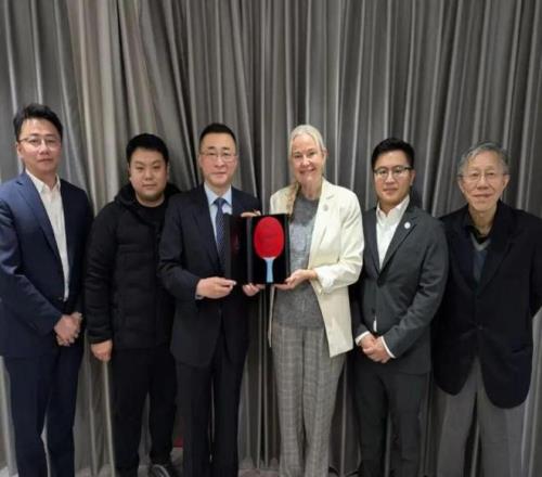 2025年12月6日,上海体育大学校务委员会主席李崟和国际乒联主席、国际奥委会委员佩特拉·索林女士在成都会面交流,共商国际乒联博物馆和中国乒乓球博物馆(以下简称“乒博馆”)发展事宜。索林女士在交流中将法国总统埃马纽埃尔·马克龙签名球拍正式移交予乒博馆,该球拍是马克龙总统近日到访四川成都观摩2025年国际乒联混合团体世界杯赛事时,亲笔写下签名并赠予索林主席的特殊礼物。这一球拍不仅是中法乒乓球交流活动中友好互动的珍贵延续,也再次彰显了乒乓球运动作为外交桥梁的持久生命力和独特价值。